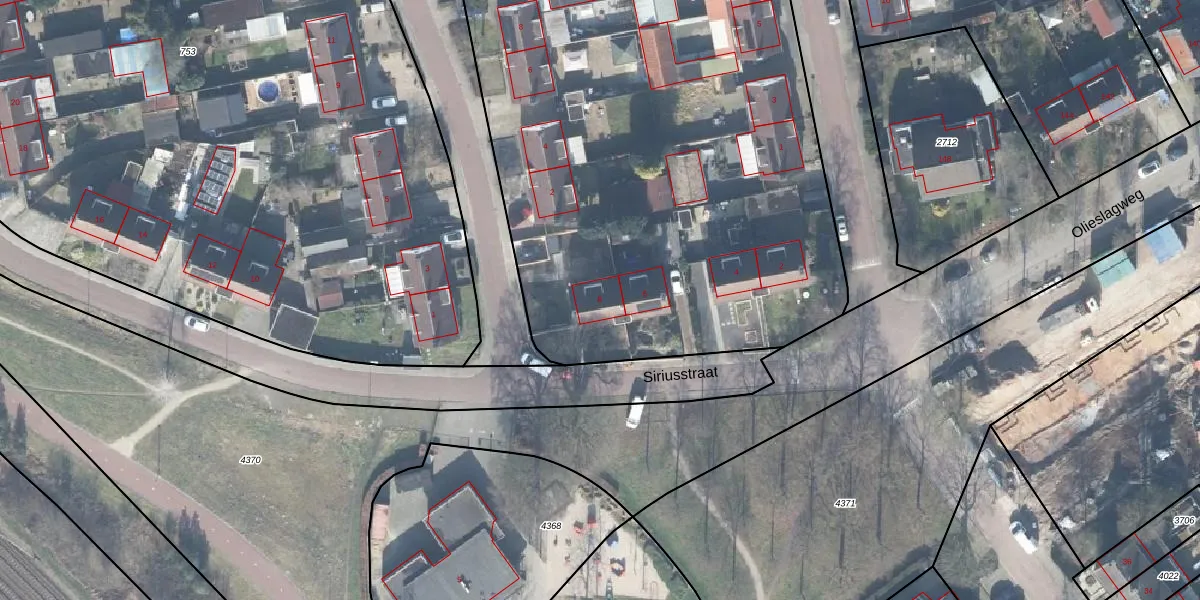 Het perceel waarop Siriusstraat 8 staat heeft een oppervlakte van 1,0 ha. Dit is een zeer groot perceel. De perceeloppervlakte wordt geregistreerd door het Kadaster. Gedetailleerde informatie over de maten van dit perceel kunt u vinden in het rapport Kadastrale kaart met maatvoering van Siriusstraat 8.