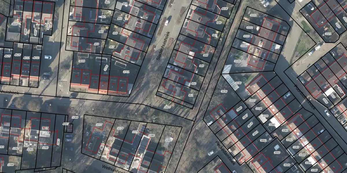 Sladenhuishoek 15 is gelegen op kadastraal perceel LNK00U951. Deze kadastrale aanduiding is uniek en wordt gebruikt door het Kadaster om eigendomsrechten en andere zakelijke rechten vast te leggen. Het perceel maakt onderdeel uit van de kadastrale gemeente Lonneker.