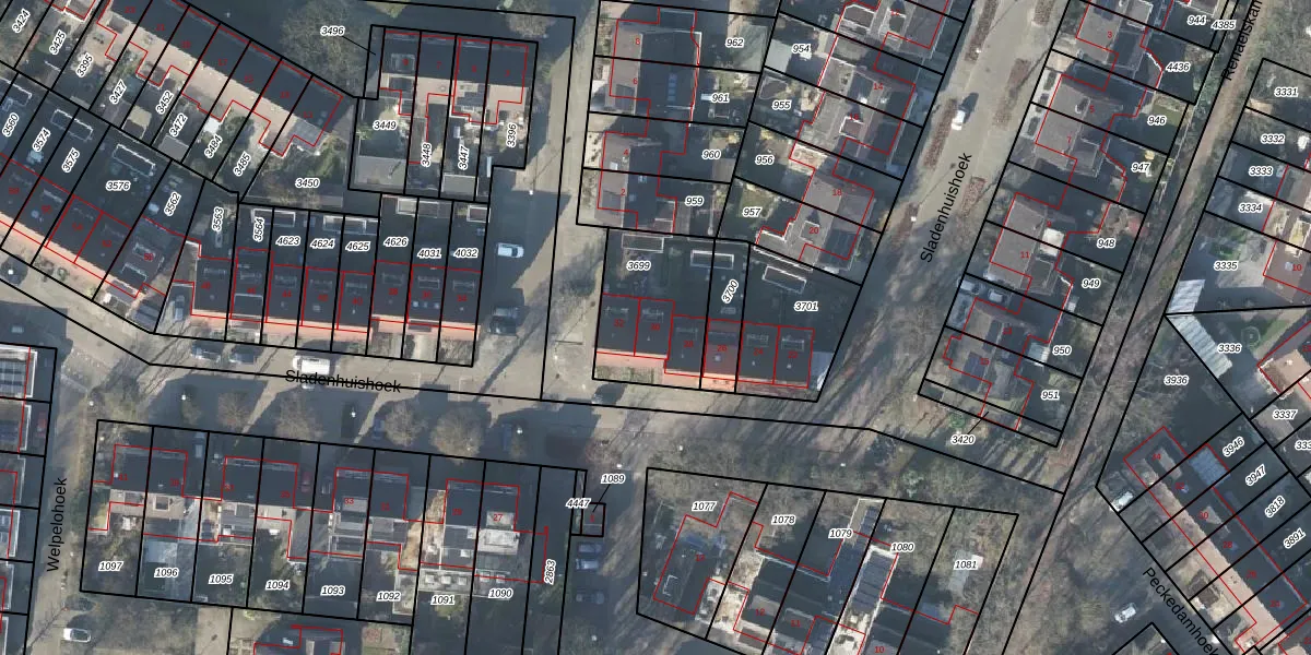 Sladenhuishoek 30 is gelegen op kadastraal perceel LNK00U3699. Deze kadastrale aanduiding is uniek en wordt gebruikt door het Kadaster om eigendomsrechten en andere zakelijke rechten vast te leggen. Het perceel maakt onderdeel uit van de kadastrale gemeente Lonneker.