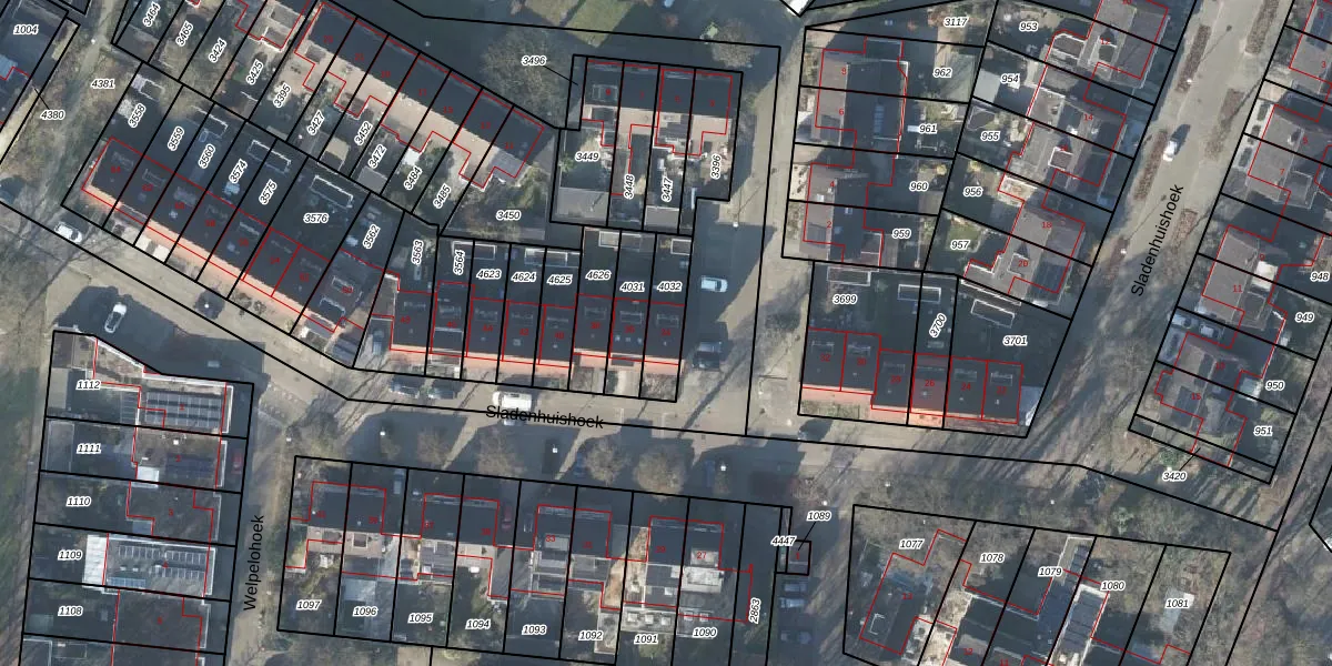 Sladenhuishoek 34 is gelegen op kadastraal perceel LNK00U4032. Deze kadastrale aanduiding is uniek en wordt gebruikt door het Kadaster om eigendomsrechten en andere zakelijke rechten vast te leggen. Het perceel maakt onderdeel uit van de kadastrale gemeente Lonneker.