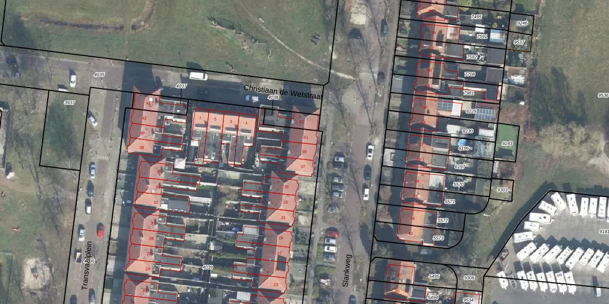 Het perceel waarop Slankweg 39 staat heeft een oppervlakte van 7503 m². Dit is een zeer groot perceel. De perceeloppervlakte wordt geregistreerd door het Kadaster. Gedetailleerde informatie over de maten van dit perceel kunt u vinden in het rapport Kadastrale kaart met maatvoering van Slankweg 39.