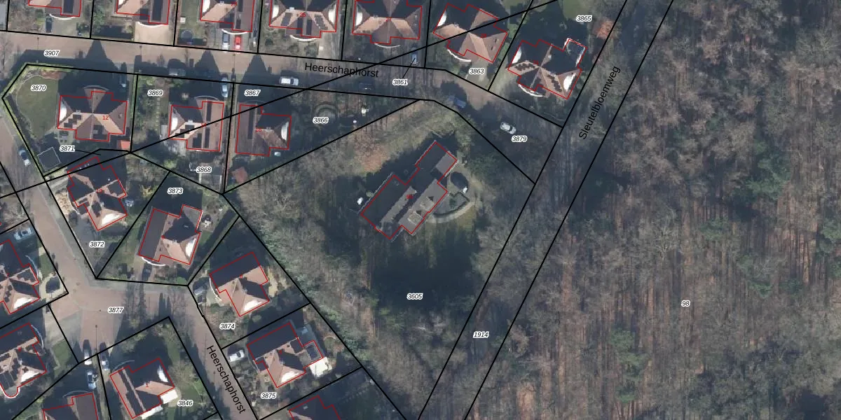 Het perceel waarop Sleutelbloemweg 95 staat heeft een oppervlakte van 2971 m². Dit is een zeer groot perceel. De perceeloppervlakte wordt geregistreerd door het Kadaster. Gedetailleerde informatie over de maten van dit perceel kunt u vinden in het rapport Kadastrale kaart met maatvoering van Sleutelbloemweg 95.