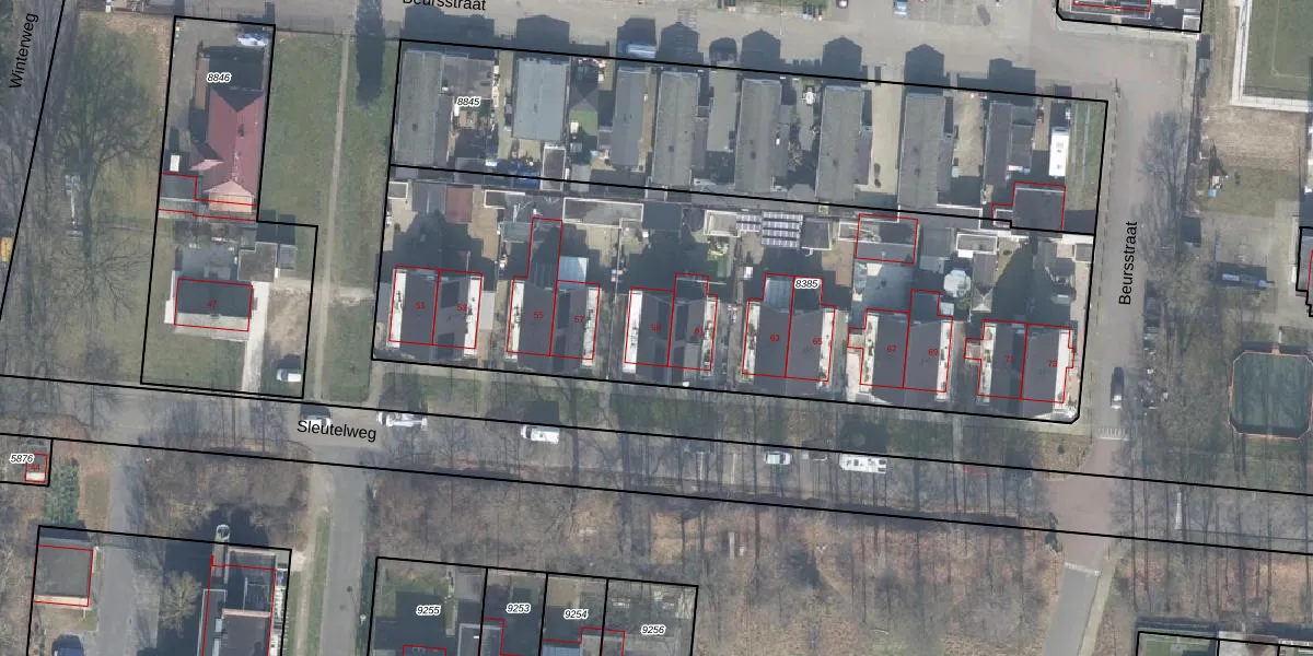 Sleutelweg 59 is gelegen op kadastraal perceel LNK00E8385. Deze kadastrale aanduiding is uniek en wordt gebruikt door het Kadaster om eigendomsrechten en andere zakelijke rechten vast te leggen. Het perceel maakt onderdeel uit van de kadastrale gemeente Lonneker.