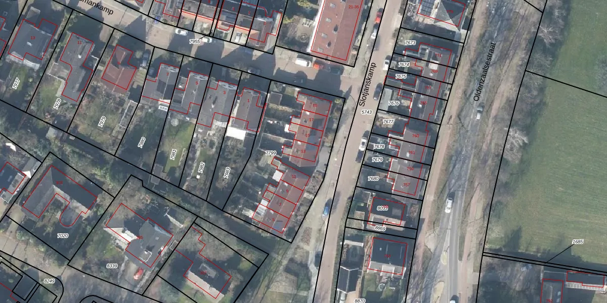Slotjanskamp 13 is gelegen op kadastraal perceel LNK00C7799. Deze kadastrale aanduiding is uniek en wordt gebruikt door het Kadaster om eigendomsrechten en andere zakelijke rechten vast te leggen. Het perceel maakt onderdeel uit van de kadastrale gemeente Lonneker.