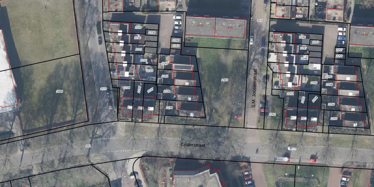 Het perceel waarop S.M. Joostenstraat 3 staat heeft een oppervlakte van 195 m². Dit is een middelgroot perceel. De perceeloppervlakte wordt geregistreerd door het Kadaster. Gedetailleerde informatie over de maten van dit perceel kunt u vinden in het rapport Kadastrale kaart met maatvoering van S.M. Joostenstraat 3.