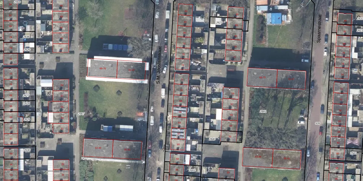 Het perceel waarop S.M. Joostenstraat 70 staat heeft een oppervlakte van 9703 m². Dit is een zeer groot perceel. De perceeloppervlakte wordt geregistreerd door het Kadaster. Gedetailleerde informatie over de maten van dit perceel kunt u vinden in het rapport Kadastrale kaart met maatvoering van S.M. Joostenstraat 70.