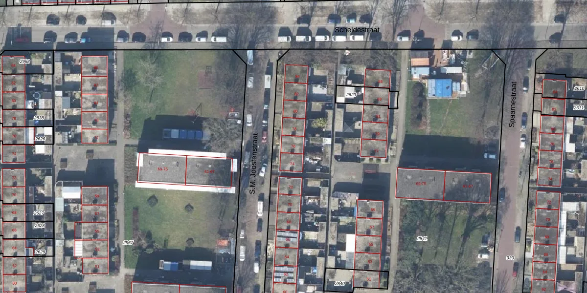 Het perceel waarop S.M. Joostenstraat 76 staat heeft een oppervlakte van 9703 m². Dit is een zeer groot perceel. De perceeloppervlakte wordt geregistreerd door het Kadaster. Gedetailleerde informatie over de maten van dit perceel kunt u vinden in het rapport Kadastrale kaart met maatvoering van S.M. Joostenstraat 76.