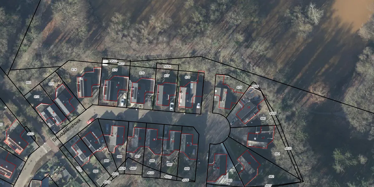 Het perceel waarop Smuddeboshoek 14 staat heeft een oppervlakte van 311 m². Dit is een groot perceel. De perceeloppervlakte wordt geregistreerd door het Kadaster. Gedetailleerde informatie over de maten van dit perceel kunt u vinden in het rapport Kadastrale kaart met maatvoering van Smuddeboshoek 14.