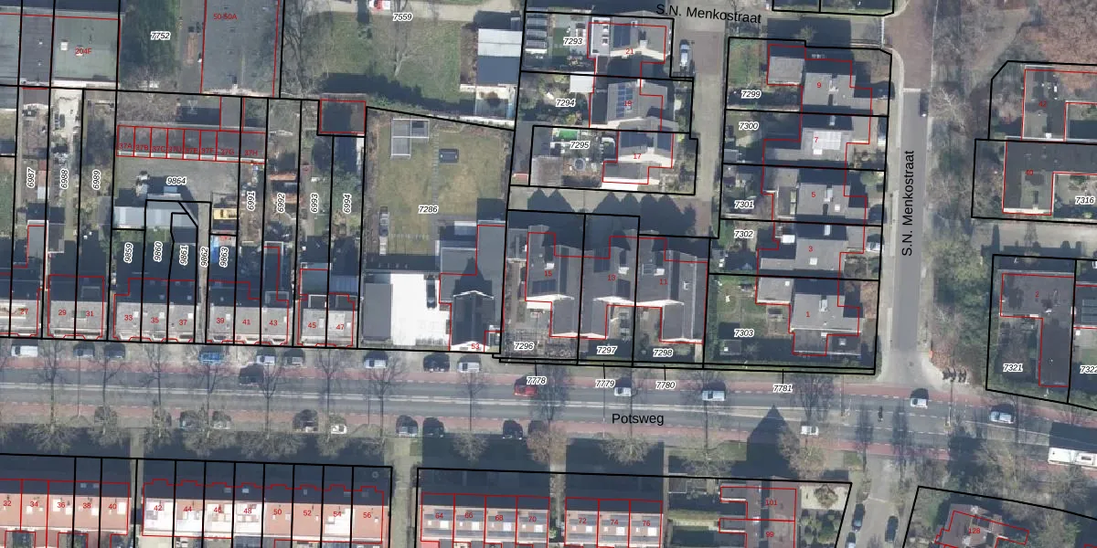 Het perceel waarop S.N. Menkostraat 15 staat heeft een oppervlakte van 380 m². Dit is een groot perceel. De perceeloppervlakte wordt geregistreerd door het Kadaster. Gedetailleerde informatie over de maten van dit perceel kunt u vinden in het rapport Kadastrale kaart met maatvoering van S.N. Menkostraat 15.