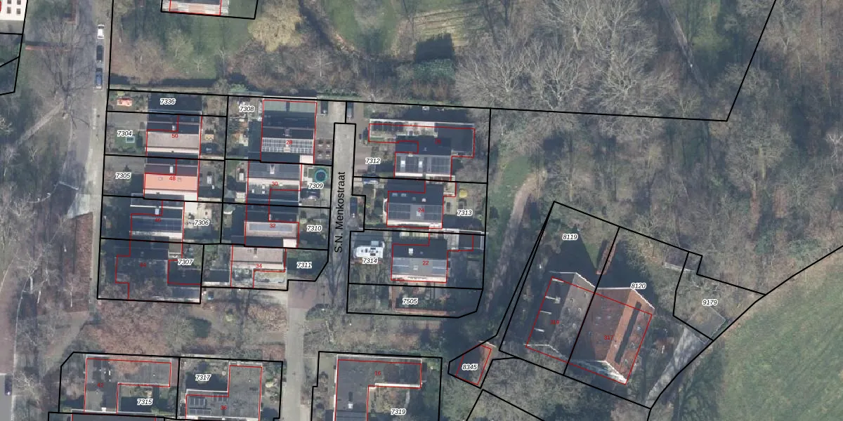 Het perceel waarop S.N. Menkostraat 24 staat heeft een oppervlakte van 373 m². Dit is een groot perceel. De perceeloppervlakte wordt geregistreerd door het Kadaster. Gedetailleerde informatie over de maten van dit perceel kunt u vinden in het rapport Kadastrale kaart met maatvoering van S.N. Menkostraat 24.
