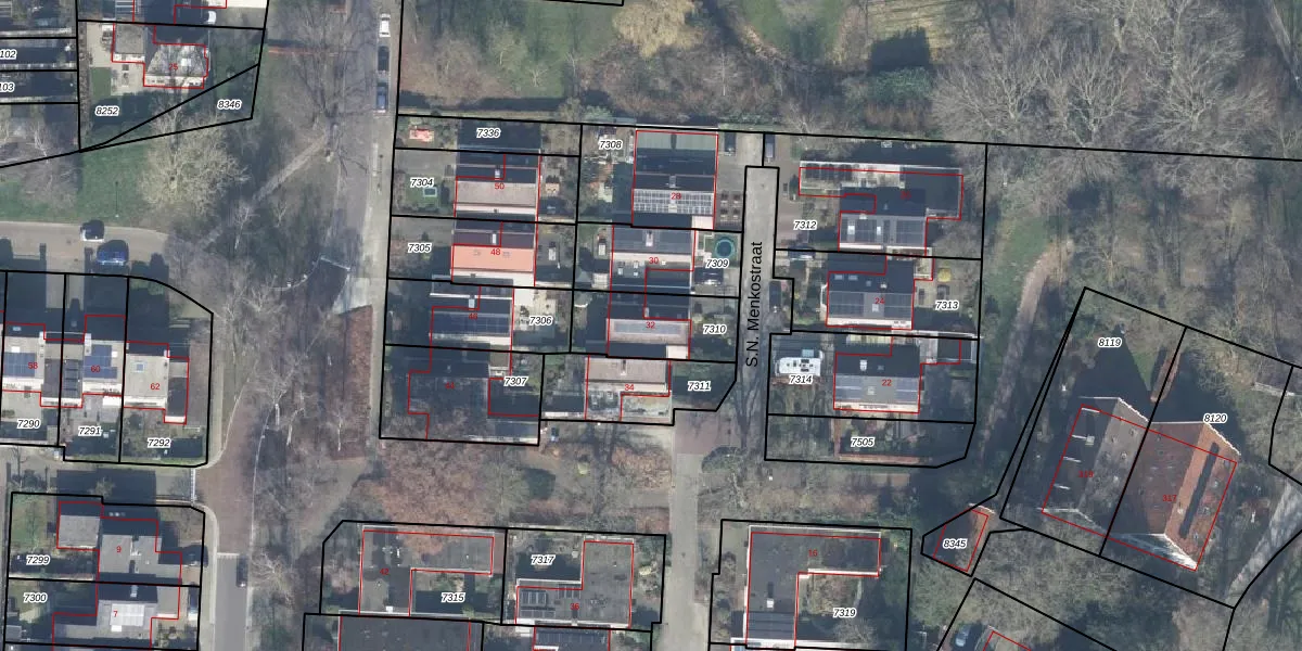 Het perceel waarop S.N. Menkostraat 32 staat heeft een oppervlakte van 254 m². Dit is een middelgroot perceel. De perceeloppervlakte wordt geregistreerd door het Kadaster. Gedetailleerde informatie over de maten van dit perceel kunt u vinden in het rapport Kadastrale kaart met maatvoering van S.N. Menkostraat 32.