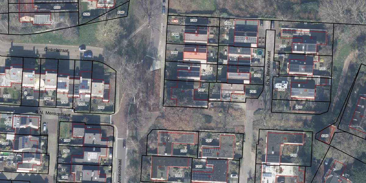 Het perceel waarop S.N. Menkostraat 44 staat heeft een oppervlakte van 343 m². Dit is een groot perceel. De perceeloppervlakte wordt geregistreerd door het Kadaster. Gedetailleerde informatie over de maten van dit perceel kunt u vinden in het rapport Kadastrale kaart met maatvoering van S.N. Menkostraat 44.