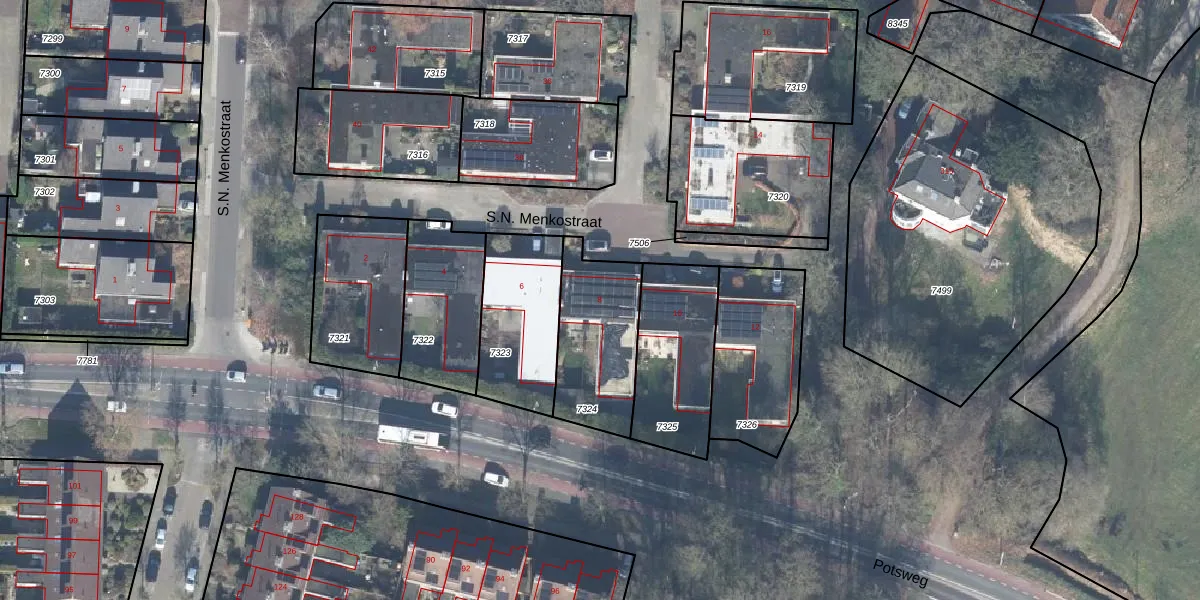 Het perceel waarop S.N. Menkostraat 8 staat heeft een oppervlakte van 371 m². Dit is een groot perceel. De perceeloppervlakte wordt geregistreerd door het Kadaster. Gedetailleerde informatie over de maten van dit perceel kunt u vinden in het rapport Kadastrale kaart met maatvoering van S.N. Menkostraat 8.