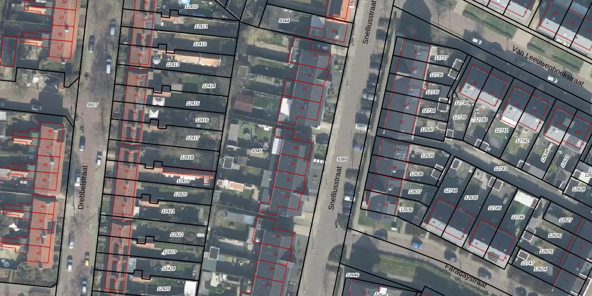 Het perceel waarop Snelliusstraat 28 staat heeft een oppervlakte van 3292 m². Dit is een zeer groot perceel. De perceeloppervlakte wordt geregistreerd door het Kadaster. Gedetailleerde informatie over de maten van dit perceel kunt u vinden in het rapport Kadastrale kaart met maatvoering van Snelliusstraat 28.