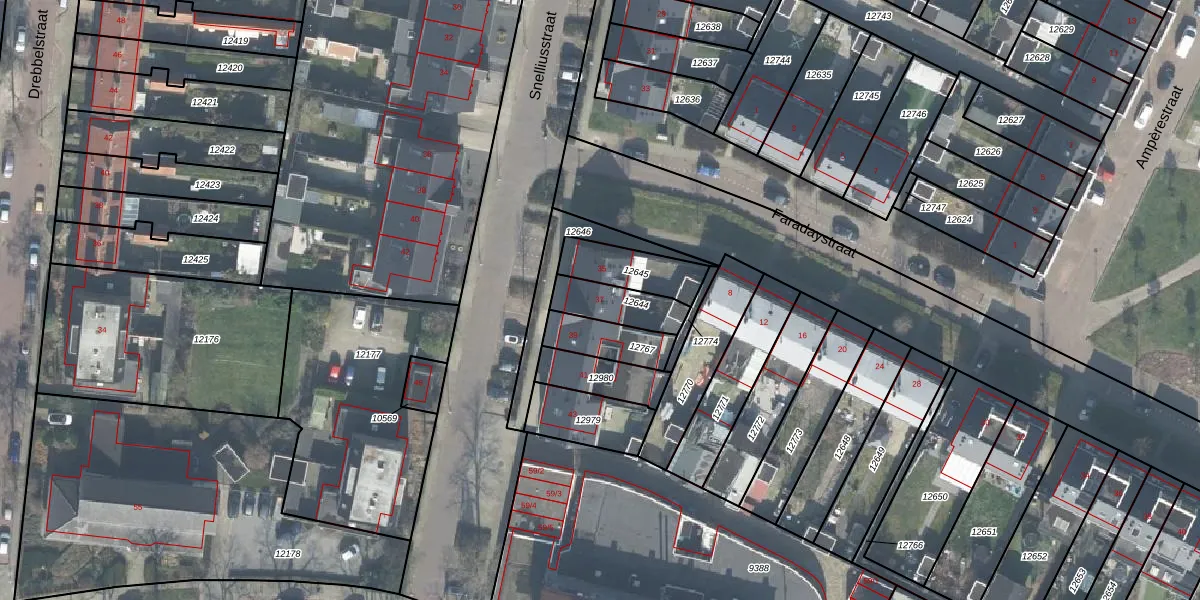 Het perceel waarop Snelliusstraat 37 staat heeft een oppervlakte van 134 m². Dit is een middelgroot perceel. De perceeloppervlakte wordt geregistreerd door het Kadaster. Gedetailleerde informatie over de maten van dit perceel kunt u vinden in het rapport Kadastrale kaart met maatvoering van Snelliusstraat 37.