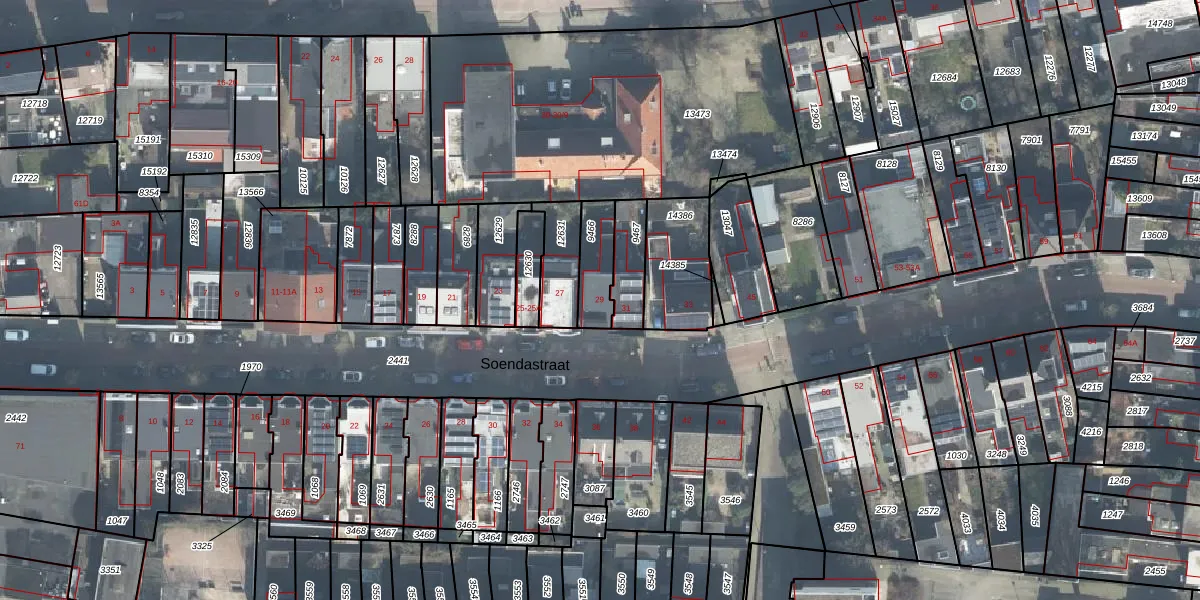 Het perceel waarop Soendastraat 29 staat heeft een oppervlakte van 115 m². Dit is een middelgroot perceel. De perceeloppervlakte wordt geregistreerd door het Kadaster. Gedetailleerde informatie over de maten van dit perceel kunt u vinden in het rapport Kadastrale kaart met maatvoering van Soendastraat 29.
