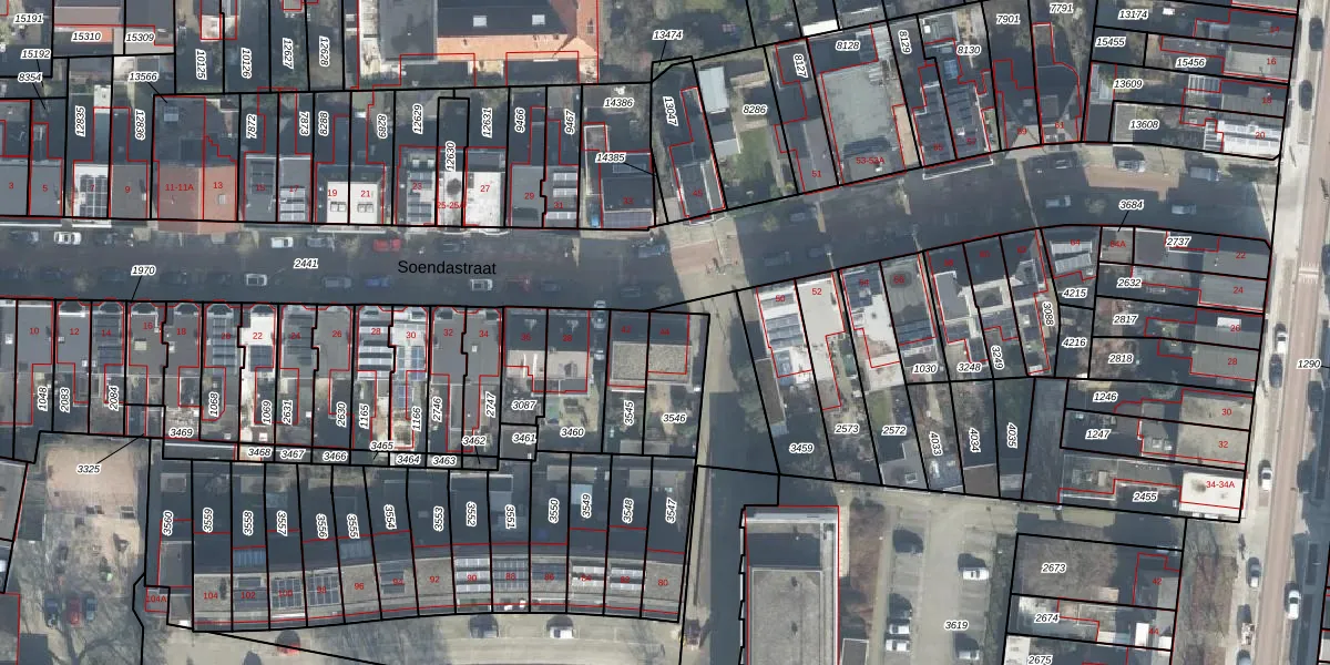 Het perceel waarop Soendastraat 44 staat heeft een oppervlakte van 183 m². Dit is een middelgroot perceel. De perceeloppervlakte wordt geregistreerd door het Kadaster. Gedetailleerde informatie over de maten van dit perceel kunt u vinden in het rapport Kadastrale kaart met maatvoering van Soendastraat 44.