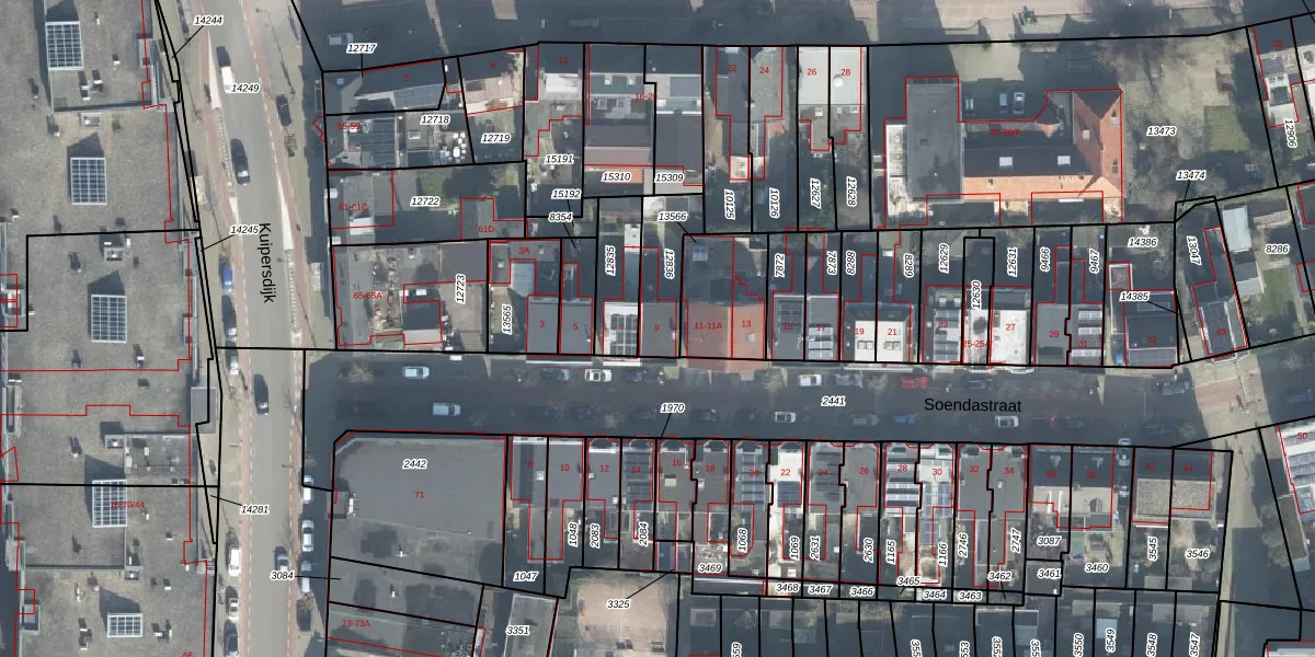 Het perceel waarop Soendastraat 9 staat heeft een oppervlakte van 180 m². Dit is een middelgroot perceel. De perceeloppervlakte wordt geregistreerd door het Kadaster. Gedetailleerde informatie over de maten van dit perceel kunt u vinden in het rapport Kadastrale kaart met maatvoering van Soendastraat 9.