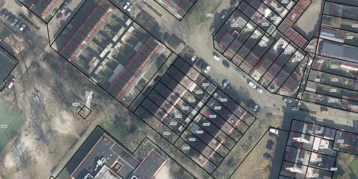 Sonatestraat 20 is gelegen op kadastraal perceel LNK00F5491. Deze kadastrale aanduiding is uniek en wordt gebruikt door het Kadaster om eigendomsrechten en andere zakelijke rechten vast te leggen. Het perceel maakt onderdeel uit van de kadastrale gemeente Lonneker.