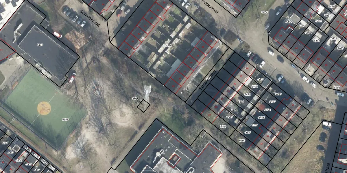 Het perceel waarop Sonatestraat 25 staat heeft een oppervlakte van 2246 m². Dit is een zeer groot perceel. De perceeloppervlakte wordt geregistreerd door het Kadaster. Gedetailleerde informatie over de maten van dit perceel kunt u vinden in het rapport Kadastrale kaart met maatvoering van Sonatestraat 25.