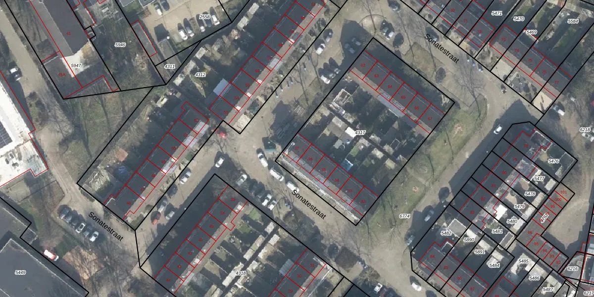 Het perceel waarop Sonatestraat 37 staat heeft een oppervlakte van 1839 m². Dit is een zeer groot perceel. De perceeloppervlakte wordt geregistreerd door het Kadaster. Gedetailleerde informatie over de maten van dit perceel kunt u vinden in het rapport Kadastrale kaart met maatvoering van Sonatestraat 37.