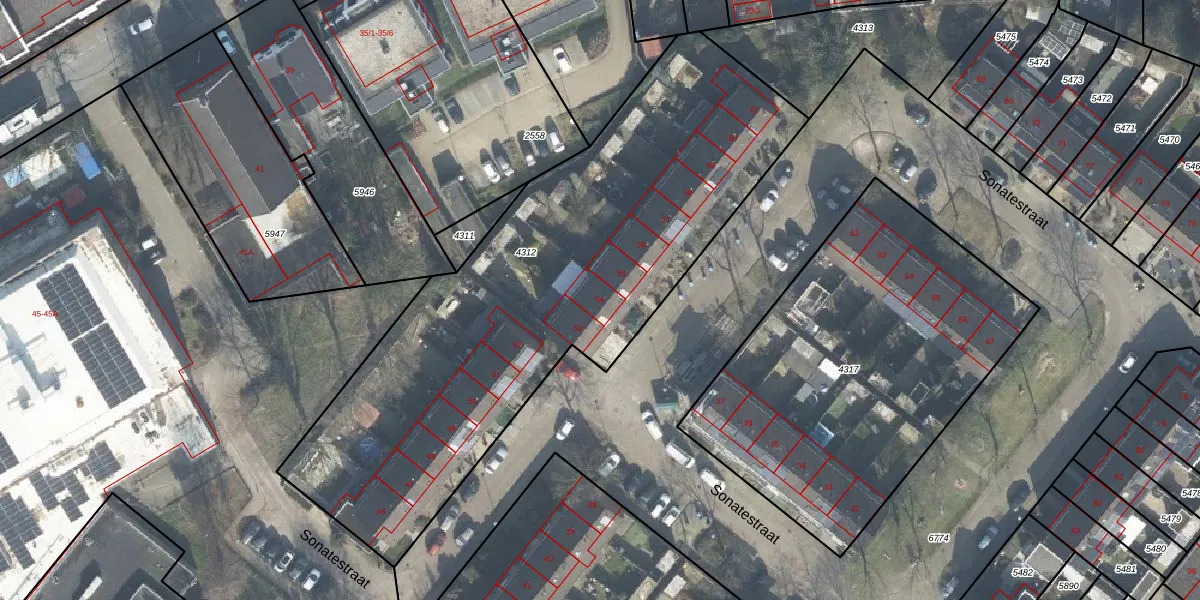 Sonatestraat 54 is gelegen op kadastraal perceel LNK00F4312. Deze kadastrale aanduiding is uniek en wordt gebruikt door het Kadaster om eigendomsrechten en andere zakelijke rechten vast te leggen. Het perceel maakt onderdeel uit van de kadastrale gemeente Lonneker.