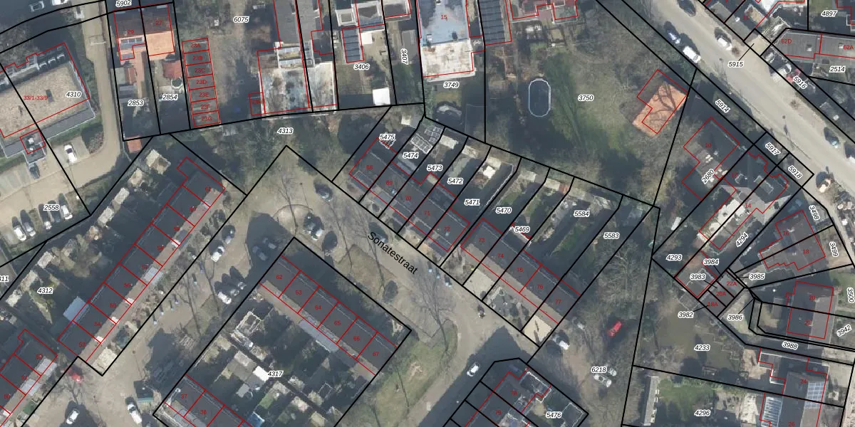 Sonatestraat 71 is gelegen op kadastraal perceel LNK00F5472. Deze kadastrale aanduiding is uniek en wordt gebruikt door het Kadaster om eigendomsrechten en andere zakelijke rechten vast te leggen. Het perceel maakt onderdeel uit van de kadastrale gemeente Lonneker.