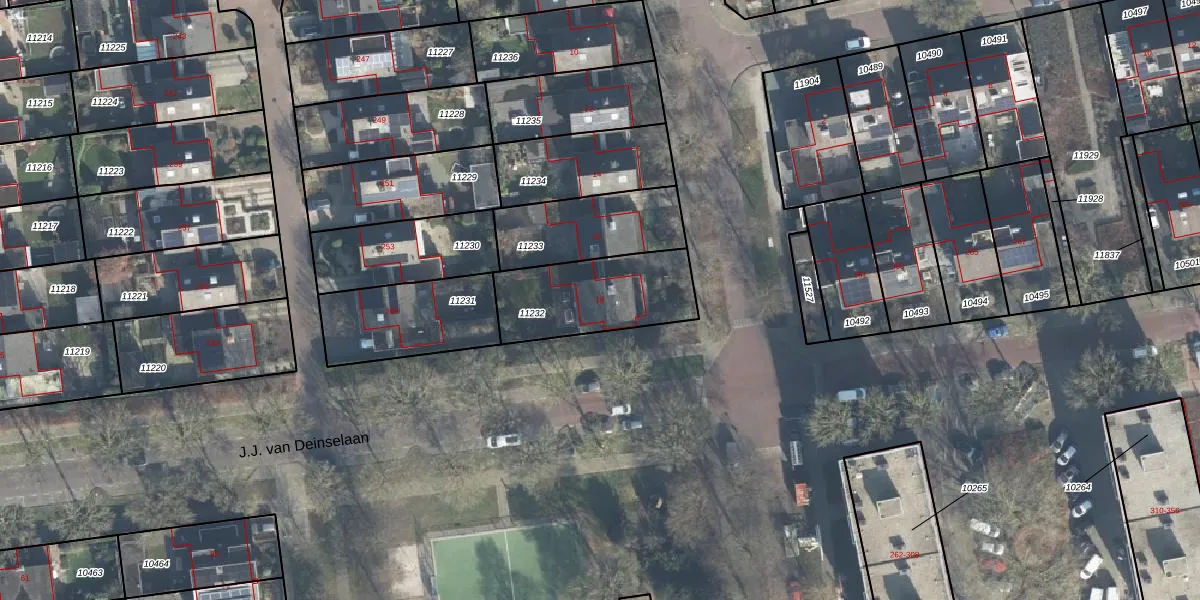 Het perceel waarop Spartastraat 18 staat heeft een oppervlakte van 393 m². Dit is een groot perceel. De perceeloppervlakte wordt geregistreerd door het Kadaster. Gedetailleerde informatie over de maten van dit perceel kunt u vinden in het rapport Kadastrale kaart met maatvoering van Spartastraat 18.