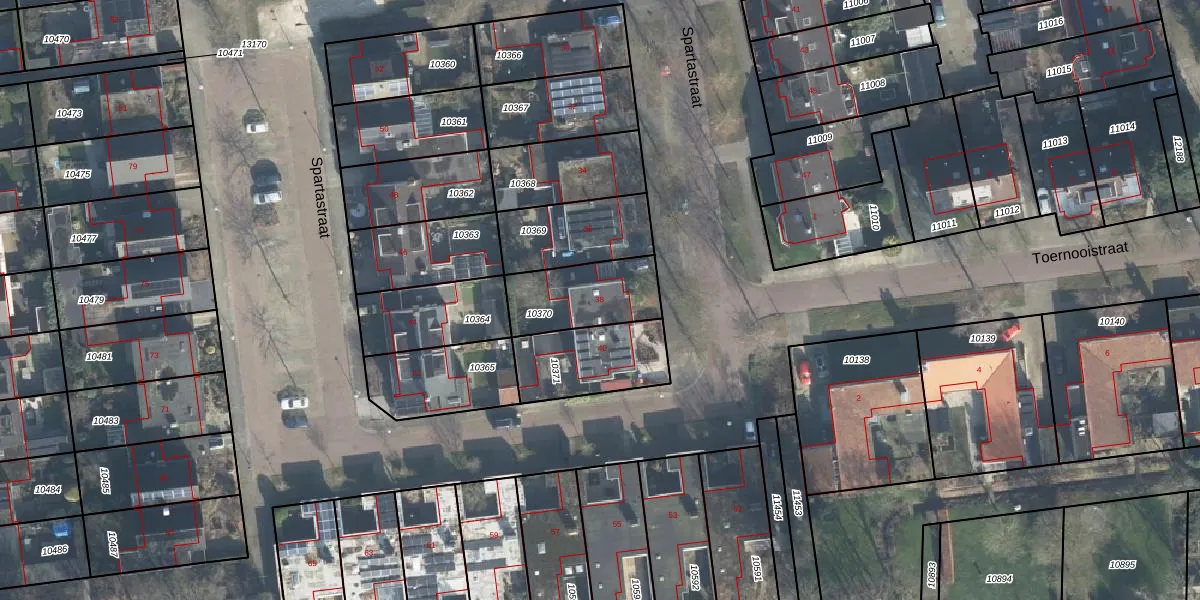 Het perceel waarop Spartastraat 38 staat heeft een oppervlakte van 262 m². Dit is een middelgroot perceel. De perceeloppervlakte wordt geregistreerd door het Kadaster. Gedetailleerde informatie over de maten van dit perceel kunt u vinden in het rapport Kadastrale kaart met maatvoering van Spartastraat 38.