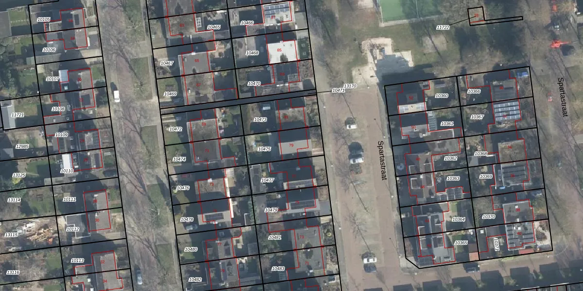 Spartastraat 79 is gelegen op kadastraal perceel LNK00O10475. Deze kadastrale aanduiding is uniek en wordt gebruikt door het Kadaster om eigendomsrechten en andere zakelijke rechten vast te leggen. Het perceel maakt onderdeel uit van de kadastrale gemeente Lonneker.