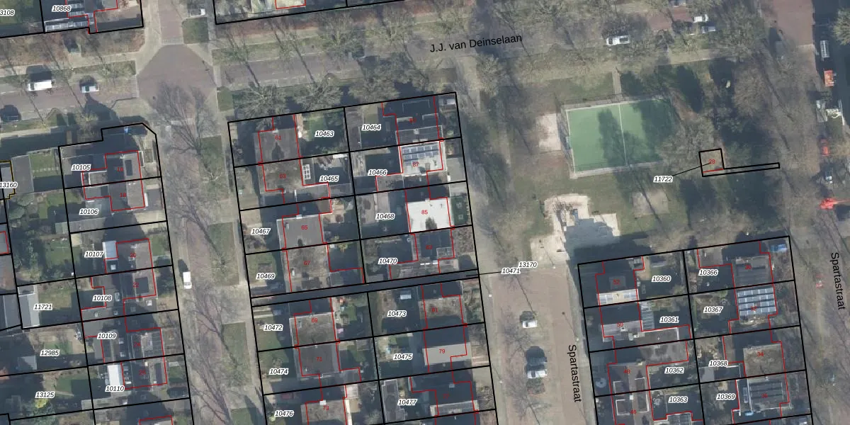 Het perceel waarop Spartastraat 85 staat heeft een oppervlakte van 274 m². Dit is een middelgroot perceel. De perceeloppervlakte wordt geregistreerd door het Kadaster. Gedetailleerde informatie over de maten van dit perceel kunt u vinden in het rapport Kadastrale kaart met maatvoering van Spartastraat 85.