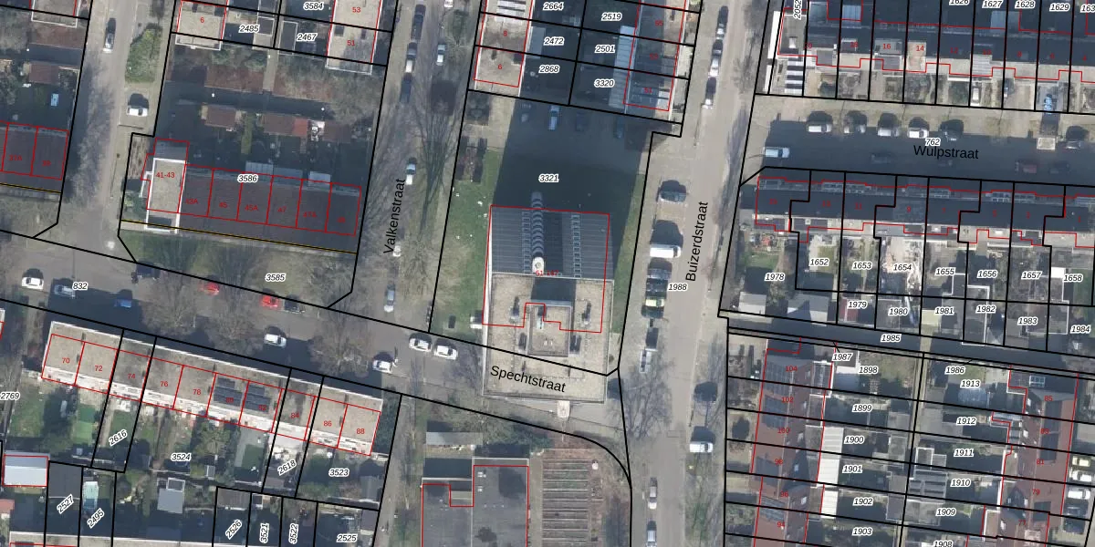 Het perceel waarop Spechtstraat 135 staat heeft een oppervlakte van 1643 m². Dit is een zeer groot perceel. De perceeloppervlakte wordt geregistreerd door het Kadaster. Gedetailleerde informatie over de maten van dit perceel kunt u vinden in het rapport Kadastrale kaart met maatvoering van Spechtstraat 135.