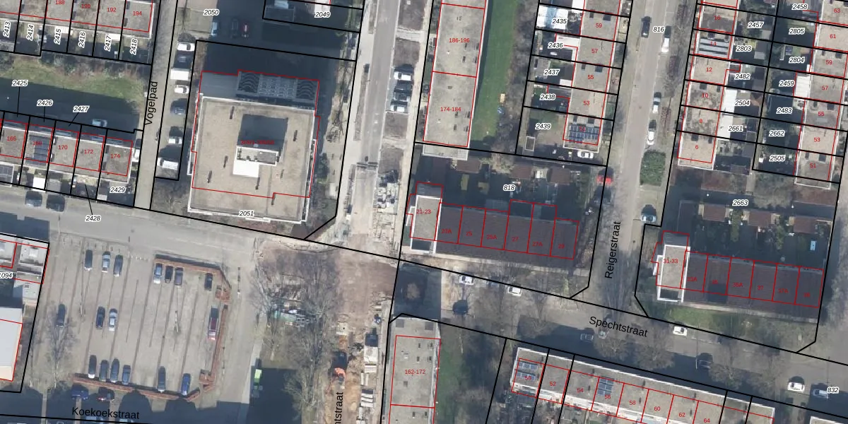 Het perceel waarop Spechtstraat 21 staat heeft een oppervlakte van 1355 m². Dit is een zeer groot perceel. De perceeloppervlakte wordt geregistreerd door het Kadaster. Gedetailleerde informatie over de maten van dit perceel kunt u vinden in het rapport Kadastrale kaart met maatvoering van Spechtstraat 21.