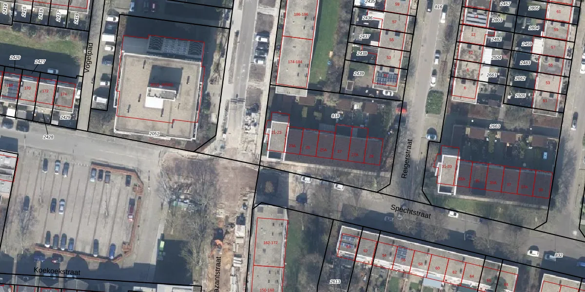 Het perceel waarop Spechtstraat 23-A staat heeft een oppervlakte van 1355 m². Dit is een zeer groot perceel. De perceeloppervlakte wordt geregistreerd door het Kadaster. Gedetailleerde informatie over de maten van dit perceel kunt u vinden in het rapport Kadastrale kaart met maatvoering van Spechtstraat 23-A.