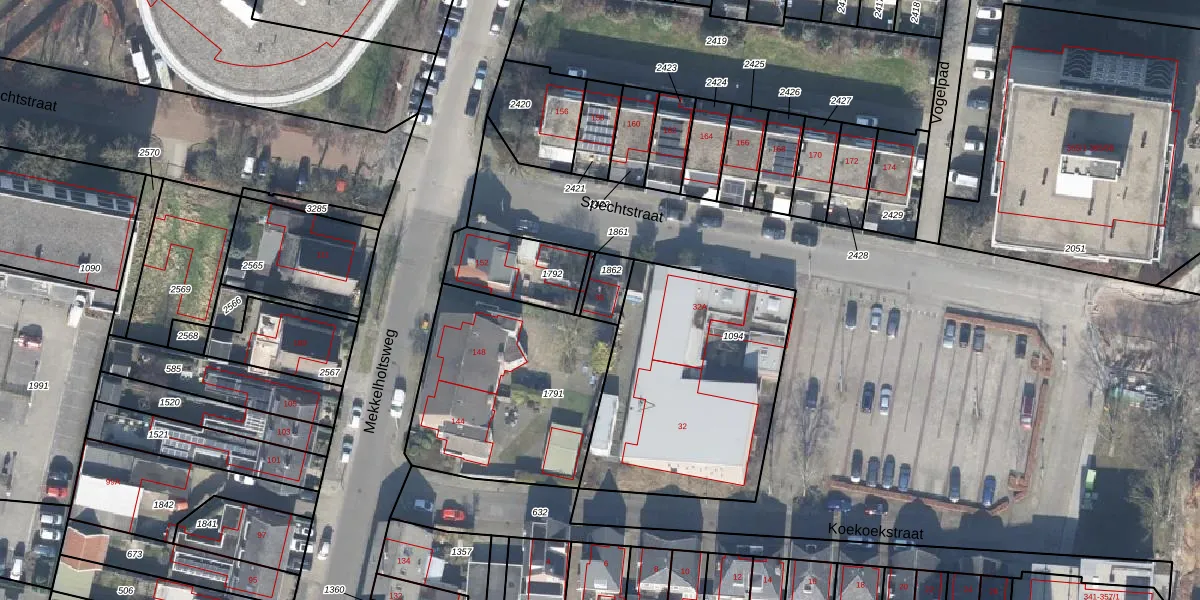Gebruik de zoekbalk of klik op een perceel voor informatie over de adressen binnen dit perceel.