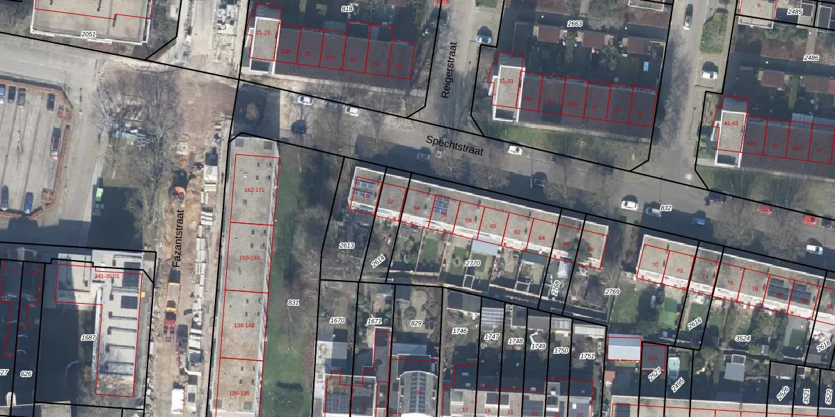 Het perceel waarop Spechtstraat 54 staat heeft een oppervlakte van 943 m². Dit is een groot perceel. De perceeloppervlakte wordt geregistreerd door het Kadaster. Gedetailleerde informatie over de maten van dit perceel kunt u vinden in het rapport Kadastrale kaart met maatvoering van Spechtstraat 54.