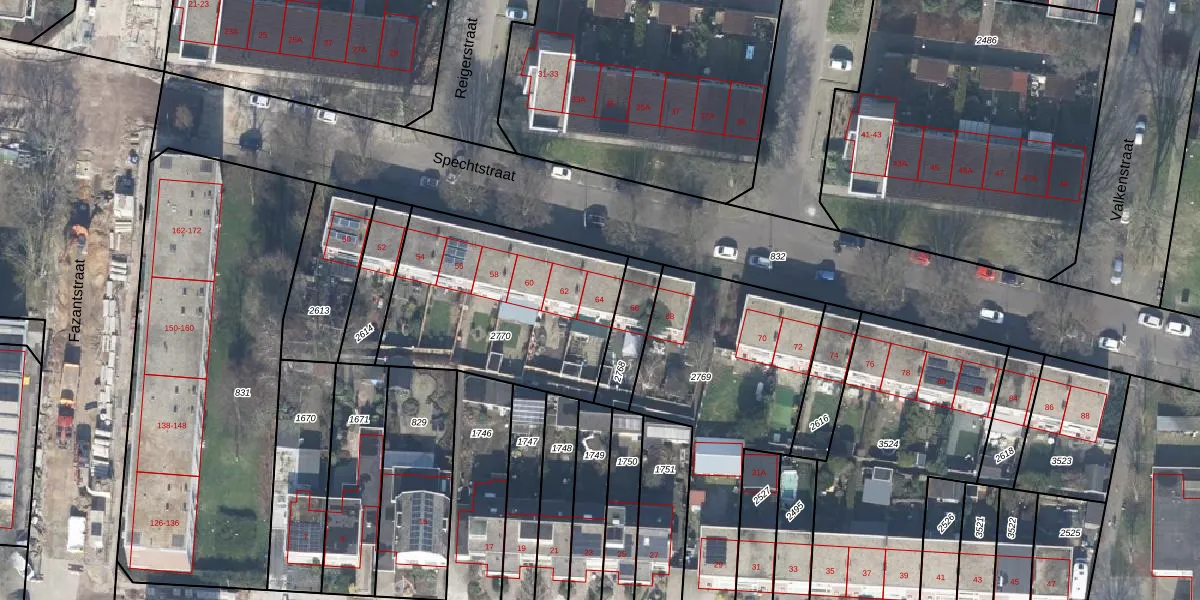 Het perceel waarop Spechtstraat 64 staat heeft een oppervlakte van 943 m². Dit is een groot perceel. De perceeloppervlakte wordt geregistreerd door het Kadaster. Gedetailleerde informatie over de maten van dit perceel kunt u vinden in het rapport Kadastrale kaart met maatvoering van Spechtstraat 64.
