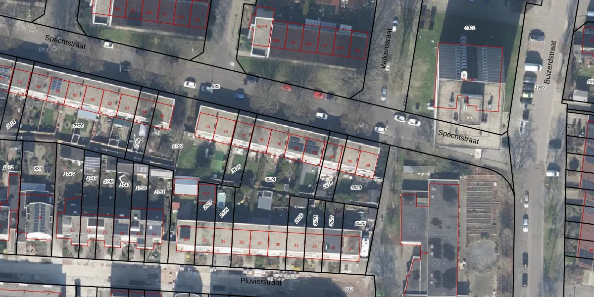 Het perceel waarop Spechtstraat 80 staat heeft een oppervlakte van 1106 m². Dit is een zeer groot perceel. De perceeloppervlakte wordt geregistreerd door het Kadaster. Gedetailleerde informatie over de maten van dit perceel kunt u vinden in het rapport Kadastrale kaart met maatvoering van Spechtstraat 80.