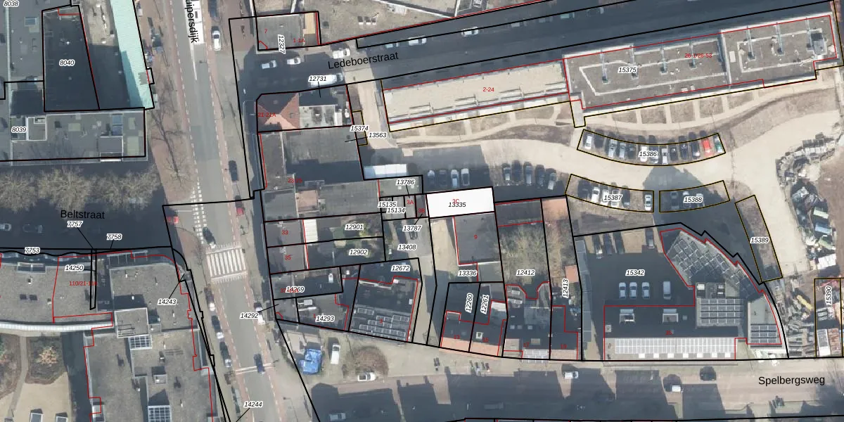 Gebruik de zoekbalk of klik op een perceel voor informatie over de adressen binnen dit perceel.