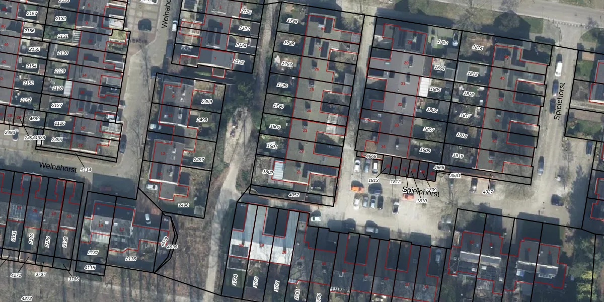 Het perceel waarop Spielehorst 22 staat heeft een oppervlakte van 193 m². Dit is een middelgroot perceel. De perceeloppervlakte wordt geregistreerd door het Kadaster. Gedetailleerde informatie over de maten van dit perceel kunt u vinden in het rapport Kadastrale kaart met maatvoering van Spielehorst 22.