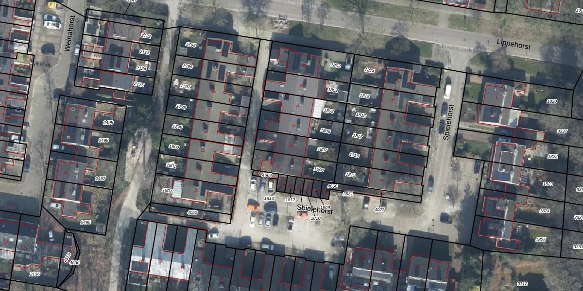Spielehorst 33 is gelegen op kadastraal perceel LNK00Q1807. Deze kadastrale aanduiding is uniek en wordt gebruikt door het Kadaster om eigendomsrechten en andere zakelijke rechten vast te leggen. Het perceel maakt onderdeel uit van de kadastrale gemeente Lonneker.