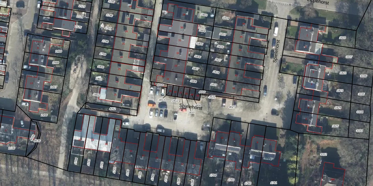 Het perceel waarop Spielehorst 38 staat heeft een oppervlakte van 19 m². Dit is een klein perceel. De perceeloppervlakte wordt geregistreerd door het Kadaster. Gedetailleerde informatie over de maten van dit perceel kunt u vinden in het rapport Kadastrale kaart met maatvoering van Spielehorst 38.