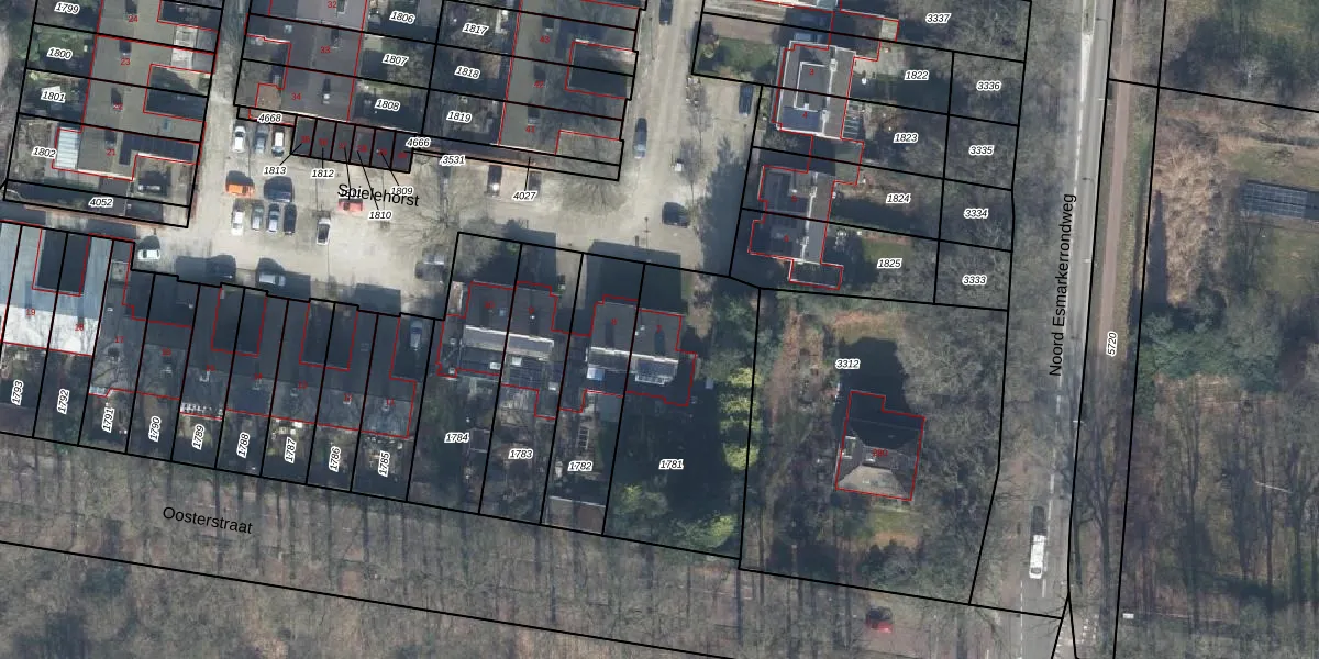 Gebruik de zoekbalk of klik op een perceel voor informatie over de adressen binnen dit perceel.
