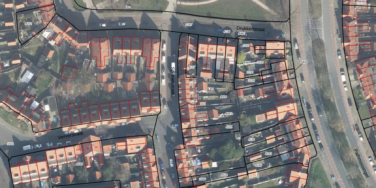 Het perceel waarop Spinnerstraat 56 staat heeft een oppervlakte van 2768 m². Dit is een zeer groot perceel. De perceeloppervlakte wordt geregistreerd door het Kadaster. Gedetailleerde informatie over de maten van dit perceel kunt u vinden in het rapport Kadastrale kaart met maatvoering van Spinnerstraat 56.