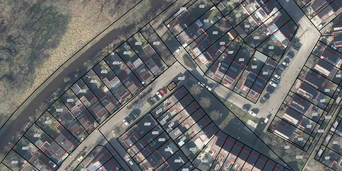 Gebruik de zoekbalk of klik op een perceel voor informatie over de adressen binnen dit perceel.