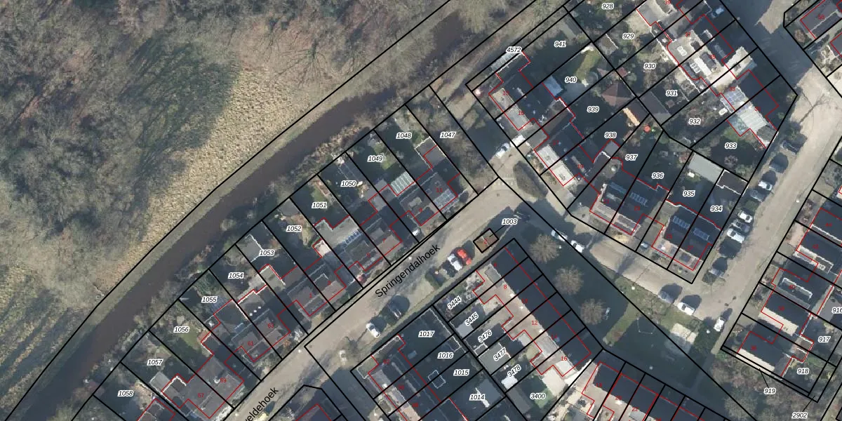 Springendalhoek 9 is gelegen op kadastraal perceel LNK00U1049. Deze kadastrale aanduiding is uniek en wordt gebruikt door het Kadaster om eigendomsrechten en andere zakelijke rechten vast te leggen. Het perceel maakt onderdeel uit van de kadastrale gemeente Lonneker.