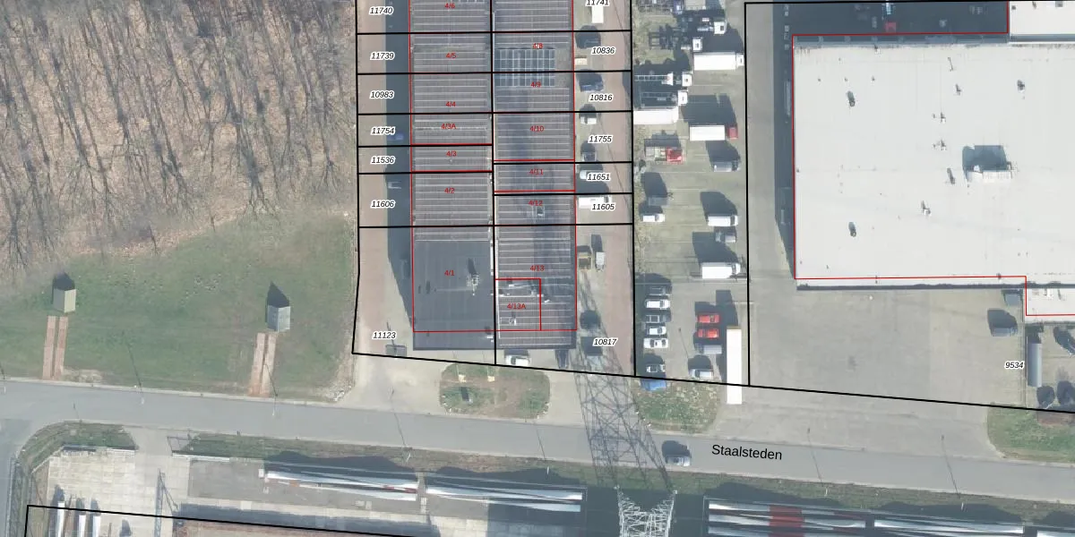 Staalsteden 4-13 is gelegen op kadastraal perceel LNK00N10817. Deze kadastrale aanduiding is uniek en wordt gebruikt door het Kadaster om eigendomsrechten en andere zakelijke rechten vast te leggen. Het perceel maakt onderdeel uit van de kadastrale gemeente Lonneker.