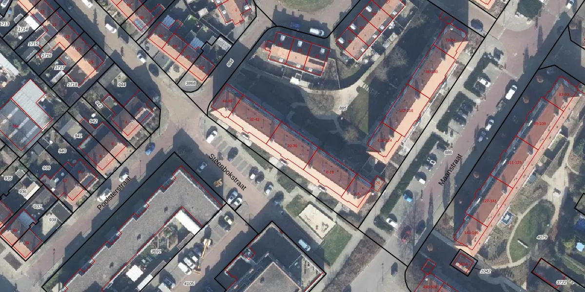 Het perceel waarop Steenbokstraat 24 staat heeft een oppervlakte van 4230 m². Dit is een zeer groot perceel. De perceeloppervlakte wordt geregistreerd door het Kadaster. Gedetailleerde informatie over de maten van dit perceel kunt u vinden in het rapport Kadastrale kaart met maatvoering van Steenbokstraat 24.
