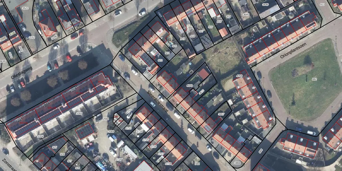 Het perceel waarop Steenbokstraat 68 staat heeft een oppervlakte van 3452 m². Dit is een zeer groot perceel. De perceeloppervlakte wordt geregistreerd door het Kadaster. Gedetailleerde informatie over de maten van dit perceel kunt u vinden in het rapport Kadastrale kaart met maatvoering van Steenbokstraat 68.
