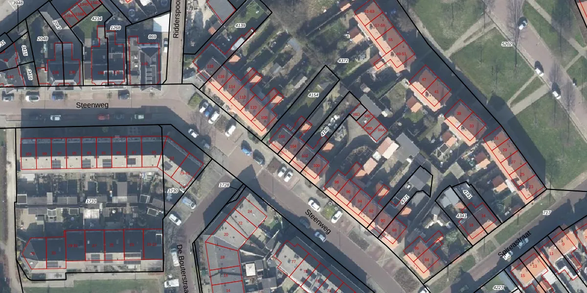 Het perceel waarop Steenweg 104 staat heeft een oppervlakte van 7792 m². Dit is een zeer groot perceel. De perceeloppervlakte wordt geregistreerd door het Kadaster. Gedetailleerde informatie over de maten van dit perceel kunt u vinden in het rapport Kadastrale kaart met maatvoering van Steenweg 104.